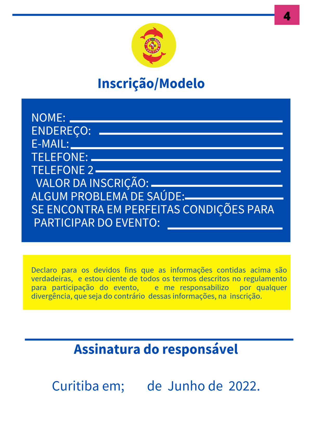 👉Obs : preencher o termo de inscrição,e nos enviar.